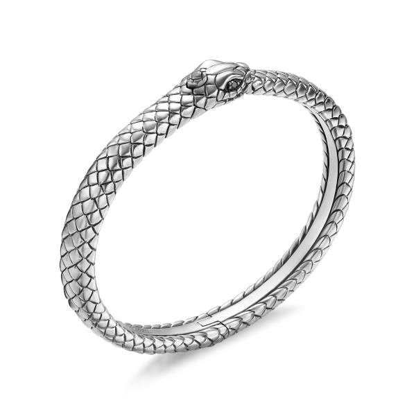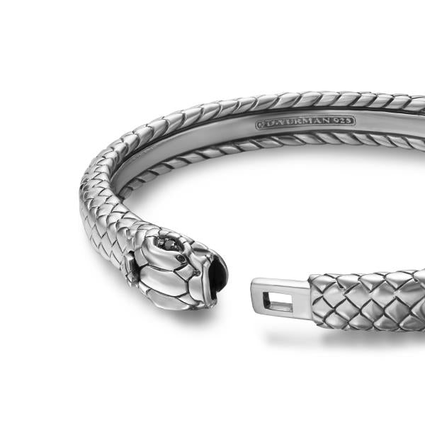 Ouroboros Bracelet in Sterling Silver with Black Diamonds, 8mm