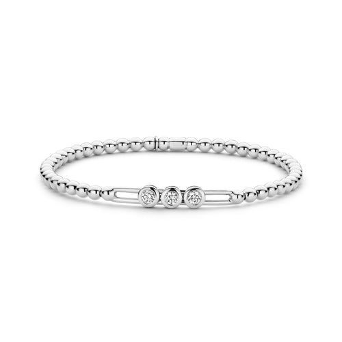 Hulchi Belluni 18K White Bezel Set Diamond Slide Stretch Bracelet