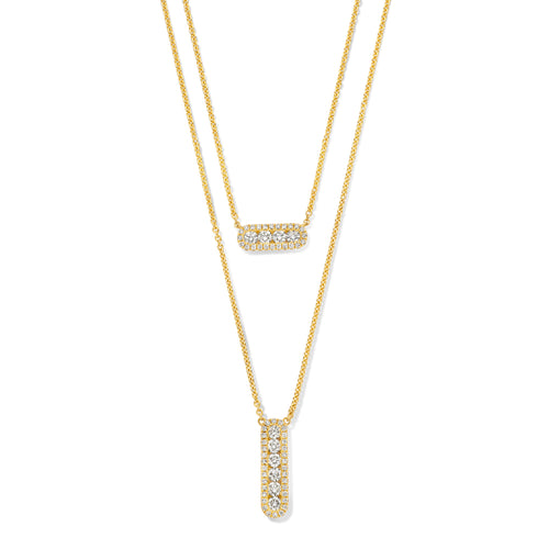 Hulchi Belluni 18K Yellow White Gold Pave Diamond Bar Necklace